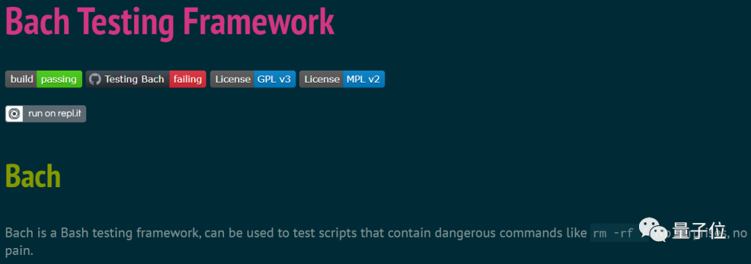 只要在测试脚本中导入这款Bach框架,就相当于服下了一剂后悔药,能让你赶紧改掉手残写错的代码提前测试Bash脚本的行为。