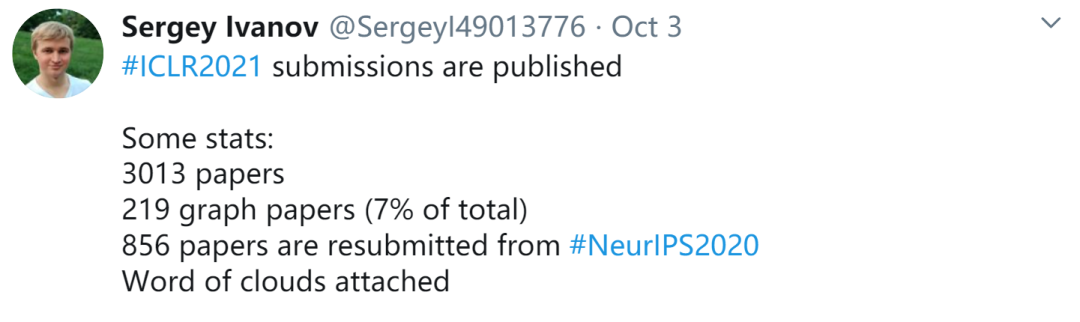 据Criteo AI Lab机器学习研究科学家Sergey Ivanov消息,本次ICLR 2021一共有3013篇论文提交,其中有856篇论文是来自NeurIPS 2020 Rejection 之后重新提交的。