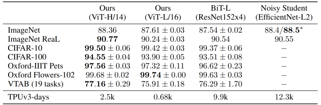 暴力美学:舍弃了CNN的归纳偏好之后(inductive biases such as translation equivariance and locality),反而更加有利于在超大规模数据上以自监督方式学习知识,即大规模训练胜于归纳偏好(large scale training trumps inductive bias),在众多图像分类任务上直逼SOTA。