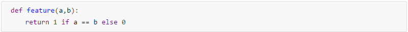 举个例子,有一个由两个灰白像素随机变量组成的Factor,每个变量的取值范围为[0,255]的整数。如果用Factor表示,这个Table将会有256*256=65536个条目,但是如果这个Factor中表示的亲密关系和两个像素的值是否相等有关,像素值相等是关系为1,不相等为0,那么用Feature表示需要写成: