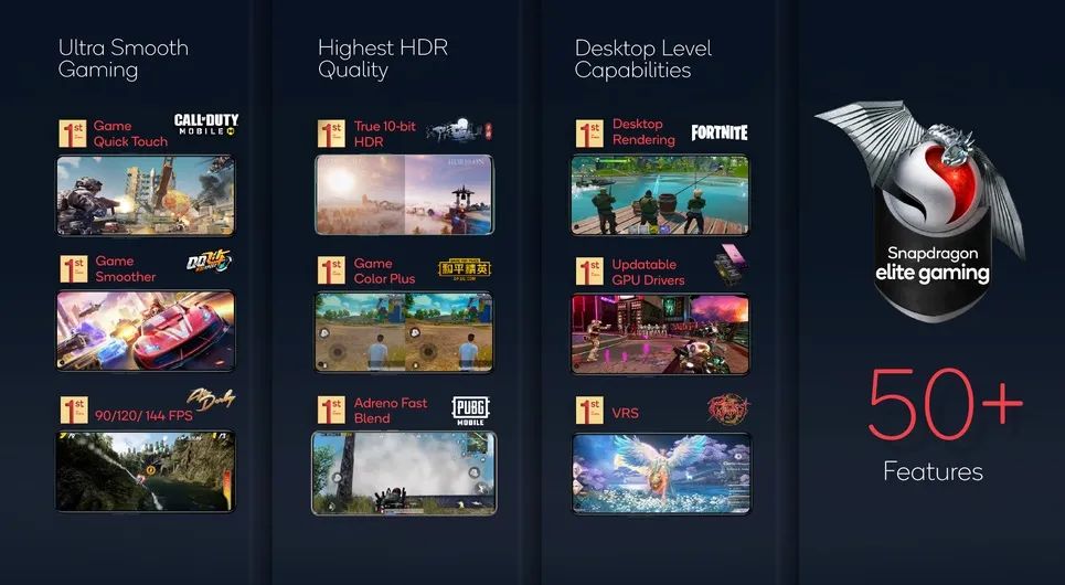 游戏方面,今年的 Snapdragon Elite Gaming 已支持 50 多个特性。去年加入的 VRS(可变分辨率渲染)今年升级为了 VRS Pro,开发者可以自行定义游戏画面中的重要元素,从而把更多的计算资源向重要元素倾斜。而像天空、地面、树叶这些不那么重要的元素,就可通过降低分辨率来渲染“偷”回一些能耗。