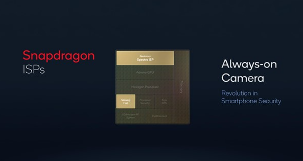 此外,骁龙 8 传感器中枢 Sensing Hub 里也加入了一个新的低功耗 AI 子系统,甚至配有一个专用的 ISP,这也是骁龙 8 上第 4 个独立的 ISP。这个 ISP 一直保持开启状态,配合 AI 子系统,让你的手机可以在息屏状态下一直启用某个前置摄像头来持续追踪你的脸,当摄像头发现你在看它时,它就会在熄屏状态下直接解锁,而你移开视线,它就会重新锁屏。