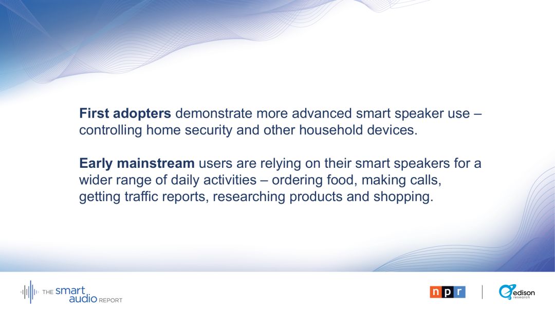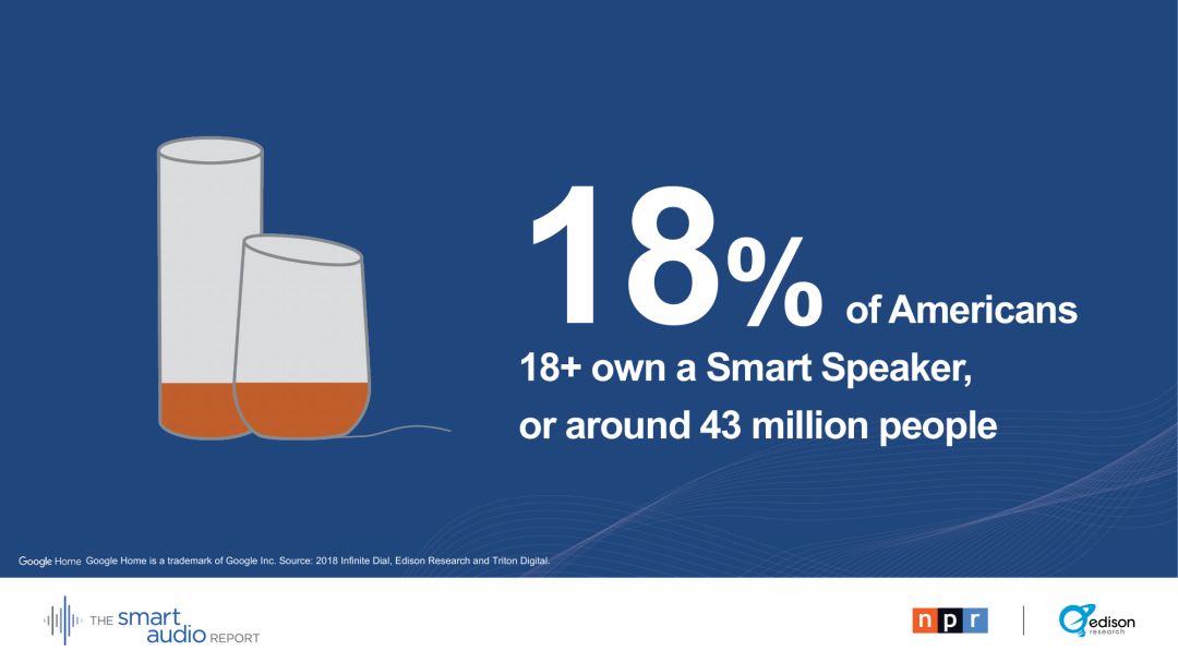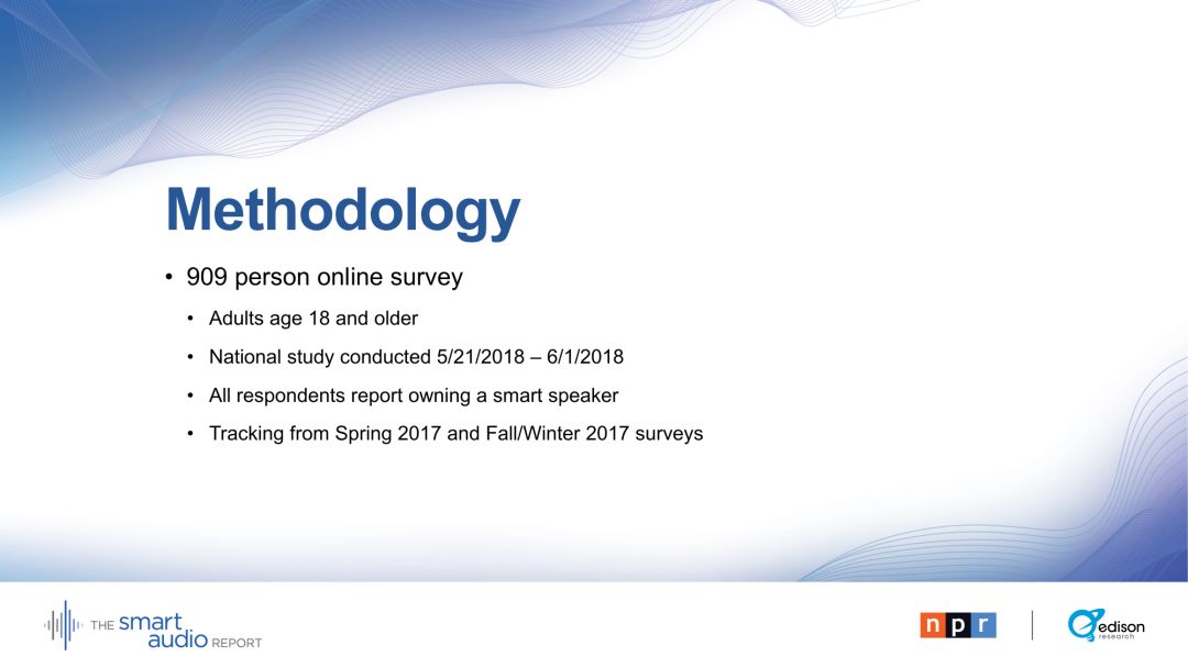 NPR和Edison Research的智能音频报告首次于2017年6月发布,这一次《2018智能音频报告》提供了对主流用户行为和态度的一些最新洞察,是对智能音箱和语音助理用户行为趋势的研究。
