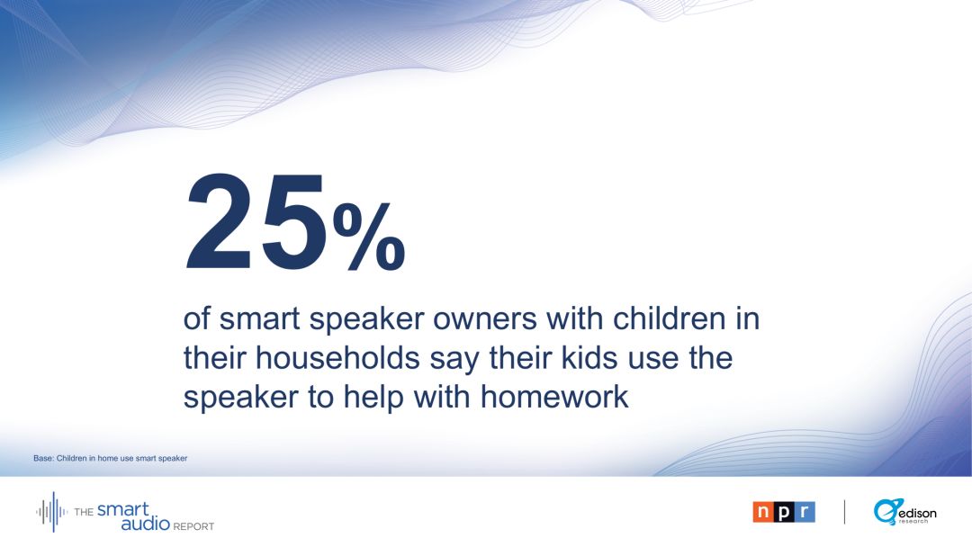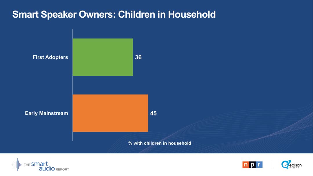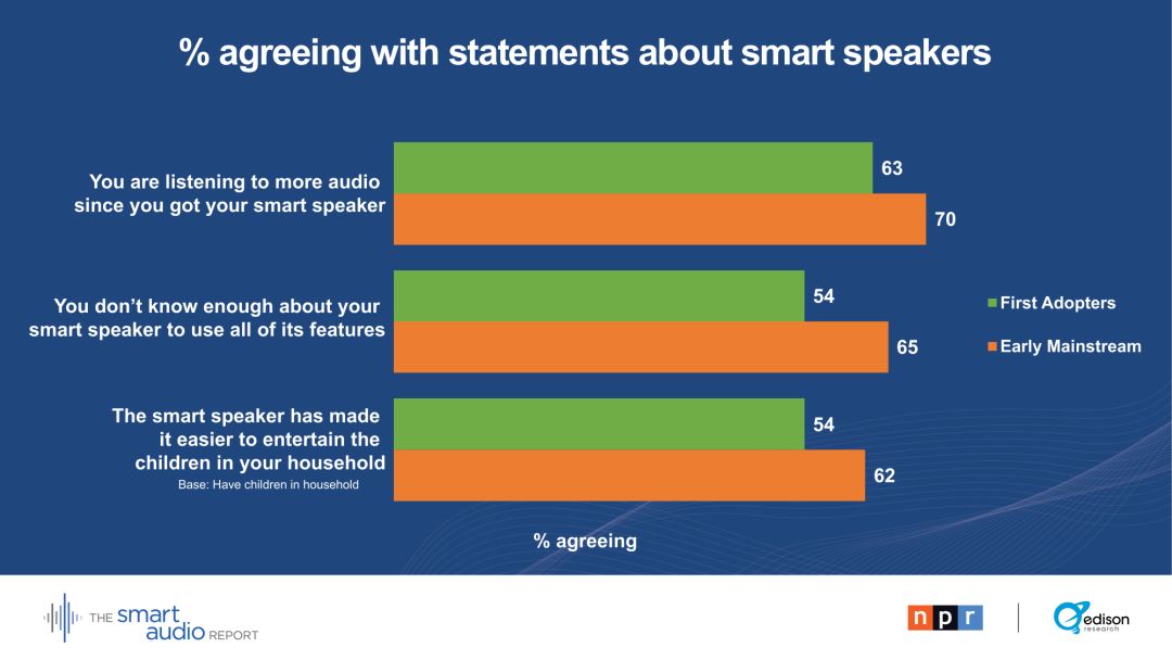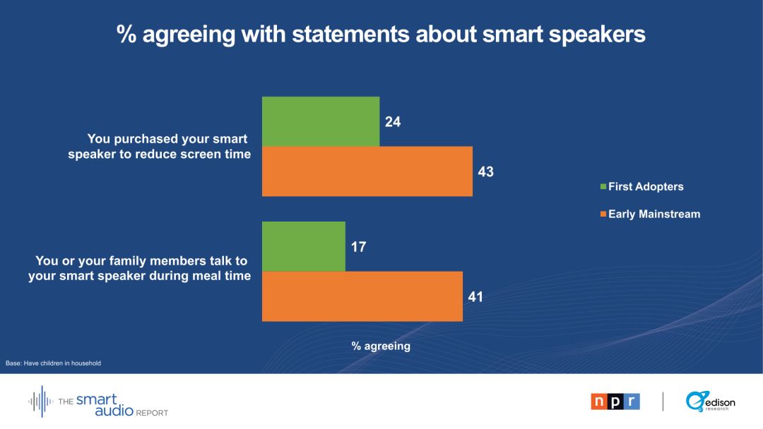 有孩子的早期主流用户中,有33 %的人甚至说,孩子们在用餐时间和智能音箱交谈。