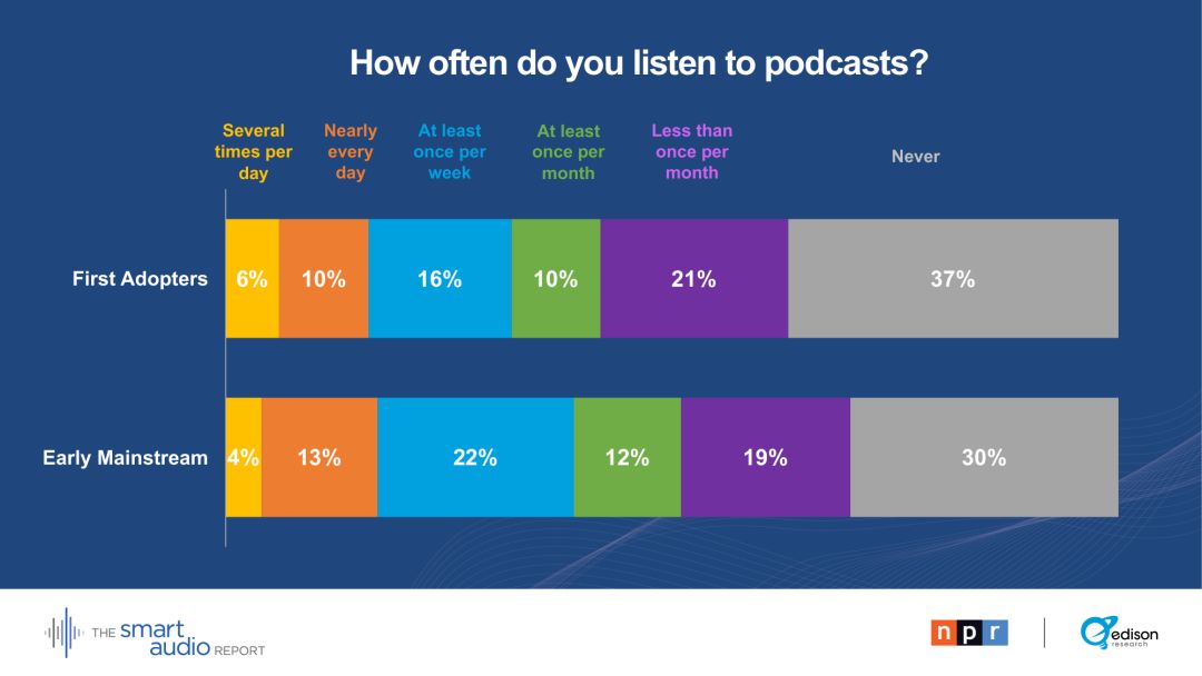 智能音箱所有者关闭电视,关闭笔记本电脑,花更多时间听新闻、音乐、播客和书籍。这助长了对更多音频内容的需求。NPR 的 CMO, Meg Goldthwaite