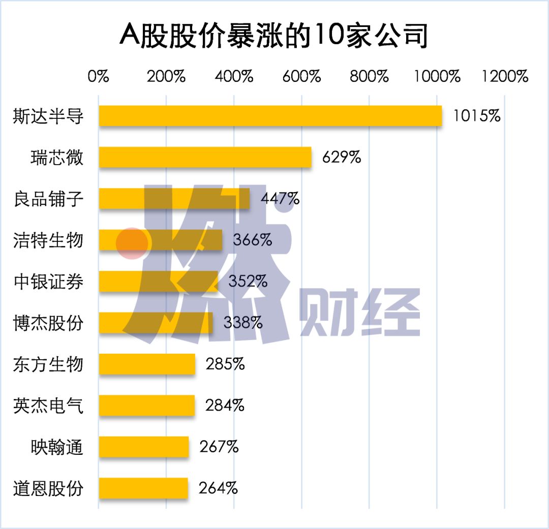 整个A股,疫情期间股价翻了一倍以上的公司数量达到32个。而股价下跌最多的公司,也只跌了49.6%,跟动不动就好几倍的涨幅相比,实在是不值一提。