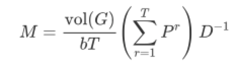 NetMF慢主要还是因为输入矩阵M不够稀疏,本文利用图谱稀疏化技术(graph sparsification technique)构造M的稀疏近似矩阵,并用随机奇异值分解(RSVD)生成稀疏图的对应Embedding,为了与本文的符号一致,这里重新给出DeepWalk的矩阵分解形式以及M在本文里的表示