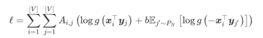 我们知道,LINE(二阶)可以视作替换了滑动窗口的word2vec,因此二者的损失函数形式相同,从skip-gram到matrix factorization的变换就从损失函数开始