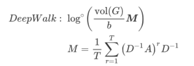 最终,将Theorem2.3改写为矩阵形式即可得(不难看出,LINE就是当T=1时的DeepWalk)