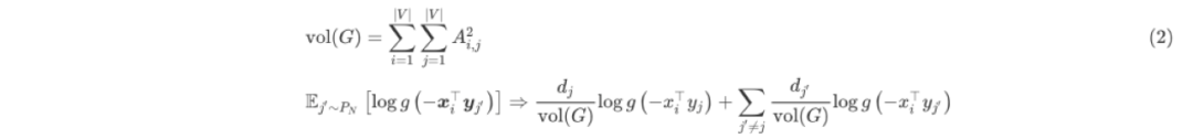 注意上式负采样中的均值部分,显然log函数的概率可以用邻接图中对应节点的度表示,即