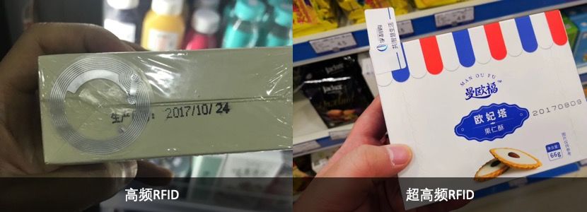 随着无人货架的兴起,很多公司开始琢磨用智能技术来控制货损。比较早出现的是射频标签RFID技术。RFID行业已经存在几十年,一直没有被大规模的应用最主要是成本比较高。RFID大致分为两种,高频和超高频。其中高频的RFID标签成本在5-6毛左右,可以紧贴在商品上面。超高频标签大致成本2-3毛,一般需要在商品上像天线一样竖起来。上面的只是物料成本,不包括人工粘贴成本以及商品ID录入的成本(大致也在2毛左右)。