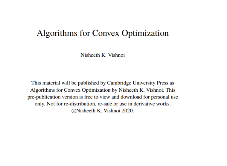 耶鲁大学Nisheeth K. Vishnoi 新书,学习凸优化!