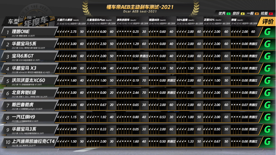 重新回到最开始的AEB测试,为了选出年度最强车型,