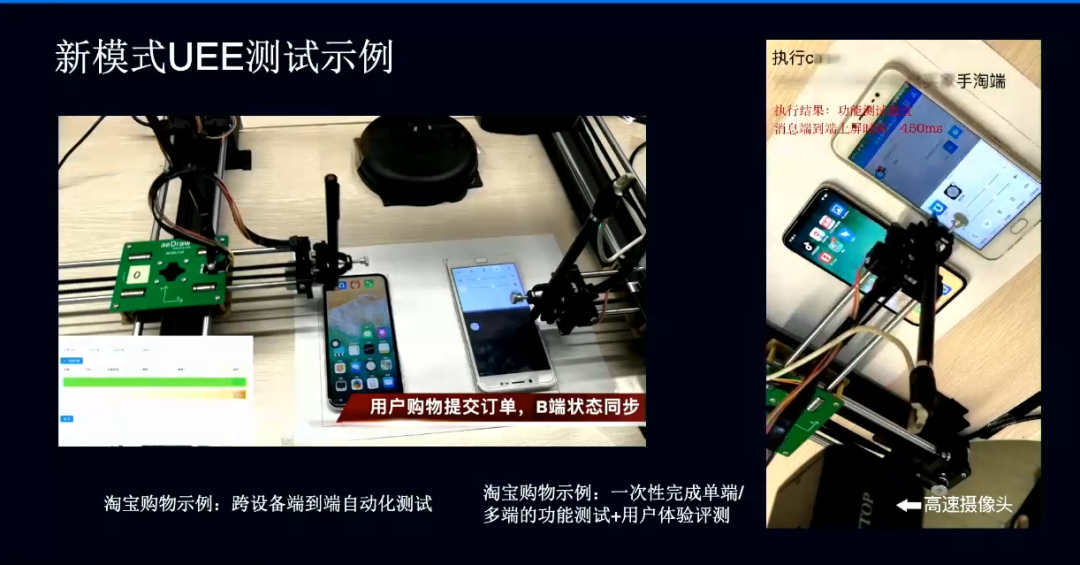 这里需要强调的是,某些 loT 设备厂家的定制系统存在未对外开放的 API,此时在软件层就无法实现竞品分析了,需借用 UEE 测试系统。此外 ,在双十一大促备战时,我们会设置专项,包括端到端的核心流程自动化、手淘 / 千牛加载体验验收、线上舆情自动化复现等。