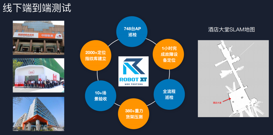 下图是 UEE 测试系统线下端到端测试案例,图中分别为 UEE 和联通合作、天猫无人超市、阿里未来酒店的场景。