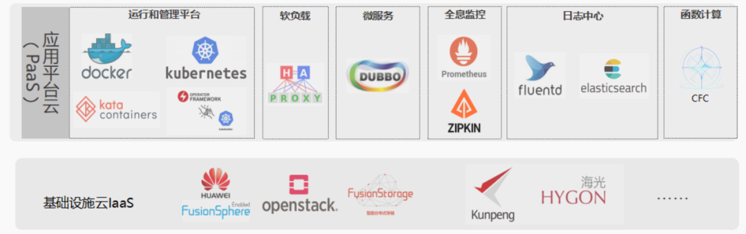 不同于 IaaS 层面以厂商产品为主,PaaS 层主要是基于开源产品自主研发。