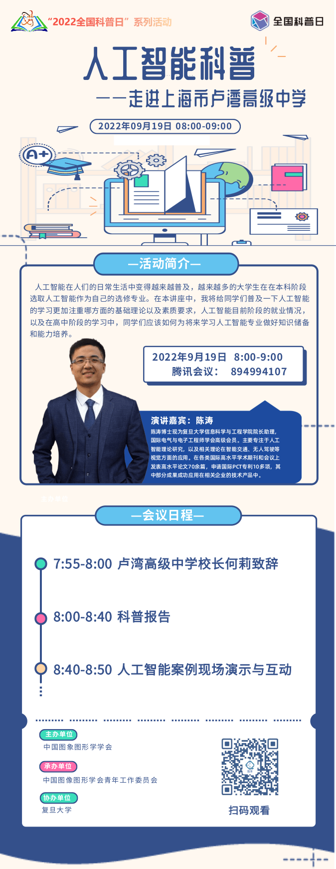 【2022全国科普日】“人工智能科普—走进上海市卢湾高级中学”讲座将于9月20日举办