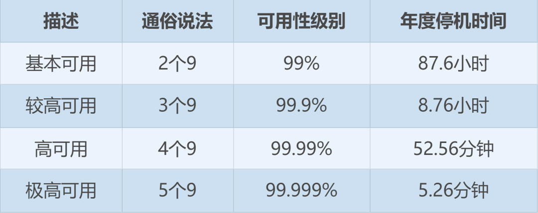 想要实现系统的高可用,首先要明确,什么样的系统可以称之为“高可用”。简单来讲,就是不宕机。“高可用性”常常被定义为 IT 系统的运营综合指标,系统的稳定可靠程度越靠近 100%,就代表系统越稳定,这种“稳定”往往需要多方面技术调优才能实现。