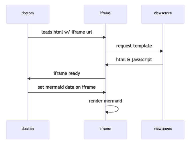 当代码遇到标记为 mermaid 的代码块时,会生成一个 iframe,iframe 采用原始 Mermaid 语法并传递给 Mermaid.js,然后将代码转换为本地浏览器中的图表。实现这一过程需要如下两个阶段: