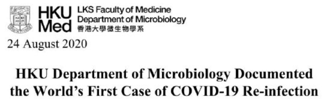 香港大学微生物学系团队证实,这是全球首例二次感染新冠病毒的患者。