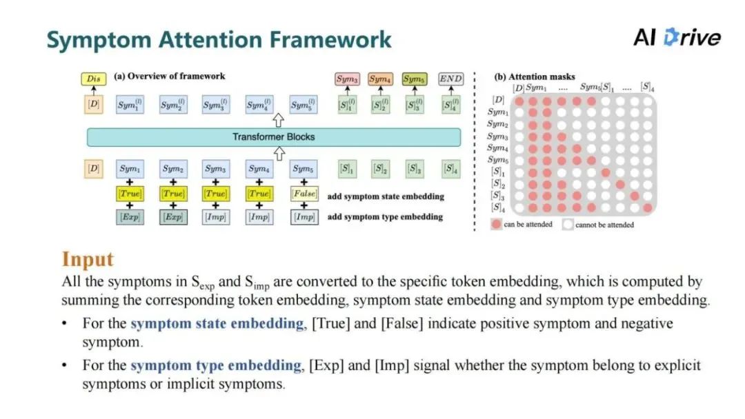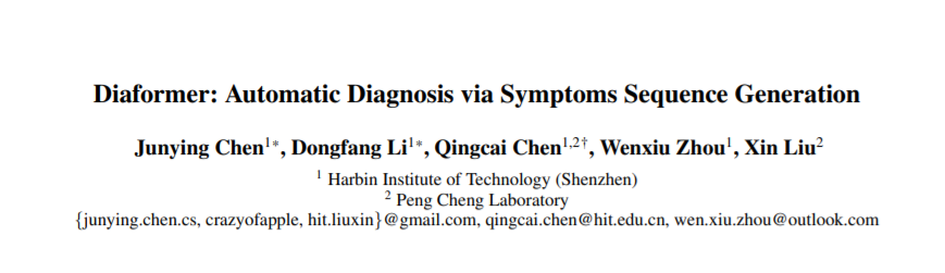 Diaformer,它包含了两个部分,第一是症状注意力框架,它采用序列生成的方法实现自动诊断,第二是无序的训练机制,它是用于减小序列生成的有序性和隐性症状本身无序性的偏差。