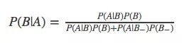 P(B|A) 为后验概率,即在观察到新数据后计算该假设的概率;