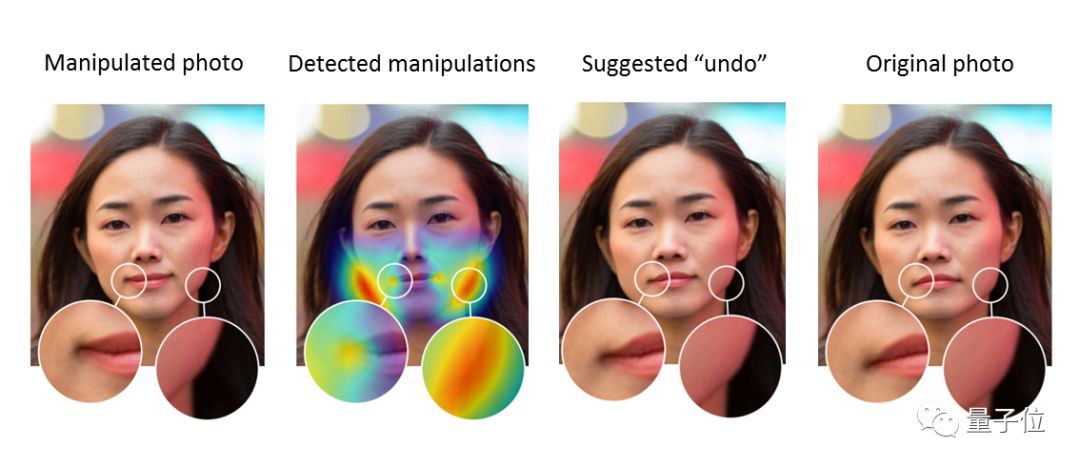 今年他和Adobe合作的另一篇论文Detecting Photoshopped Faces by Scripting Photoshop,可以发现照片是否经过PS瘦脸美颜的操作,而且还能恢复“照骗”之前的模样。