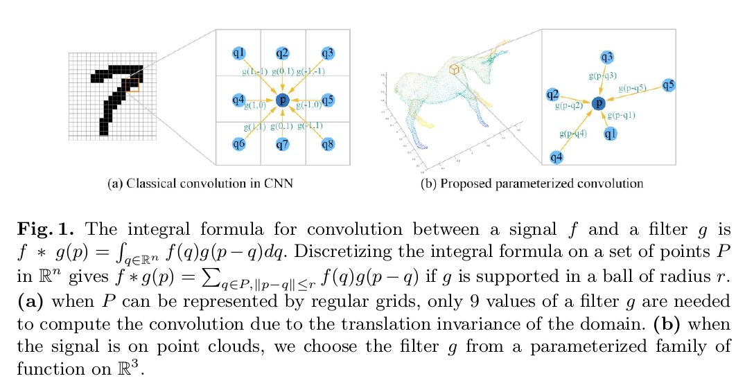 我们提出了一种卷积架构SpiderCNN,它旨在直接从点云中提取特征。我们验证了其在分类和分段基准方面的有效性。通过离散化如图1所示的卷积积分公式,并在上使用一系列特殊的参数化非线性函数作为滤波器,我们为点云引入了一个新的卷积层SpiderConv。