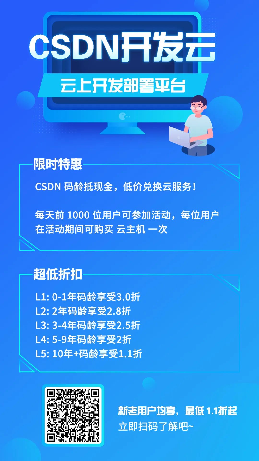 秉承“致力于为IT技术人,成就一亿技术人”的服务理念,CSDN开发云服务开放内测,联合国内知名云厂商,共同为开发者提供价低质优的云服务、丰富的开源项目与文档,帮助中小企业、个人开发者和学生群体一键上云、低价上云、高效上云。