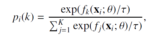θ为网络参数,K 表示分类类别数,τ表示温度。