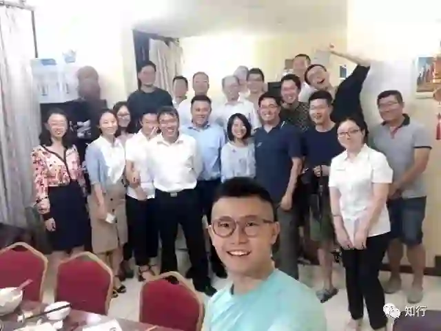 ▲集团董事长庞新星(前排左五)来员工宿舍慰问,饭后与大家自拍留念