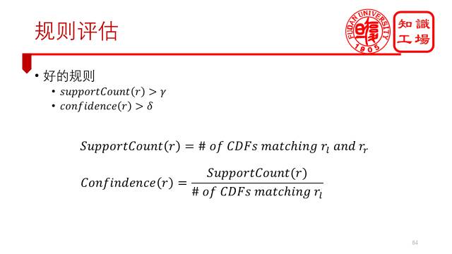 一般来讲,分为两步,第一步是找到候选属性对。可以通过属性相似性来找候选属性对,这样英文名和英文名称就能找到了。但是有一些属性对还是找不到,比如妻子和老婆。这个就需要利用外部的同义词知识库来做了。大家可以从同义词字典、百度汉语等地方来找同义词。如果还有些找不到的话,就要通过人工的方式录入进去。第二步是删除错误的候选属性对。那么如何删除错误属性对呢?一般来说,是基于启发式规则来做的,包括等价属性不能同时出现在一个实体中。例如复旦大学这个实体中不可能同时出现“英文名”和“英文名称”这两个属性。以及等价属性的domain和range要相同等等。最后,再通过人工的方式删掉一些。