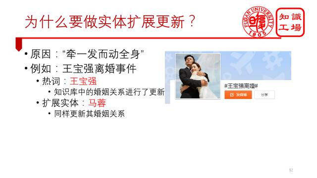 之所以要做实体扩展是因为牵一发而动全身。一个关系发生了变化,会牵扯到很多实体,它们的关系都会发生变化。比如王宝强离婚,不仅王宝强的婚姻关系变了,马蓉的婚姻关系同样也变了。