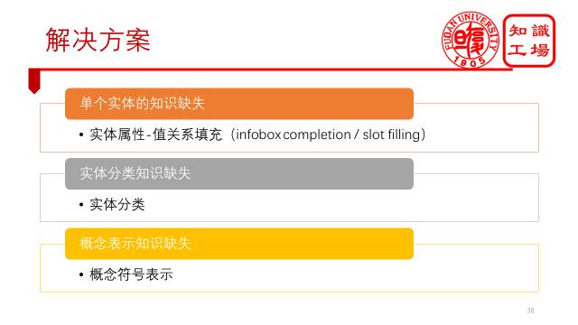 所有百科知识图谱都会面临的一个不可避免的问题就是知识缺失。因为我们的数据源是百科类网站,而它们很难做到完整。总体来说,包括三类知识缺失: