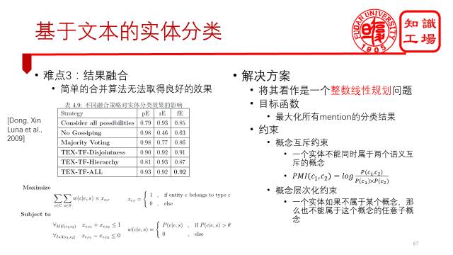 例如表中的前三种融合策略,分别是取并集、取交集、多数投票,效果都不尽如人意。 所以我们提出了一个整数线性规划的问题,在合并的同时,考虑概念与概念之间的关系才进行约束,包括互斥概念不能同时存在,比如人物和建筑,以及概念层次化约束,父概念不为1的情况下,所有子概念均不能为1。