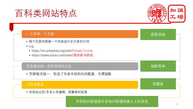 第三个特点是内容质量高,百科类网站都是通过众包或者专业人员编辑的,错误相对要少一些。