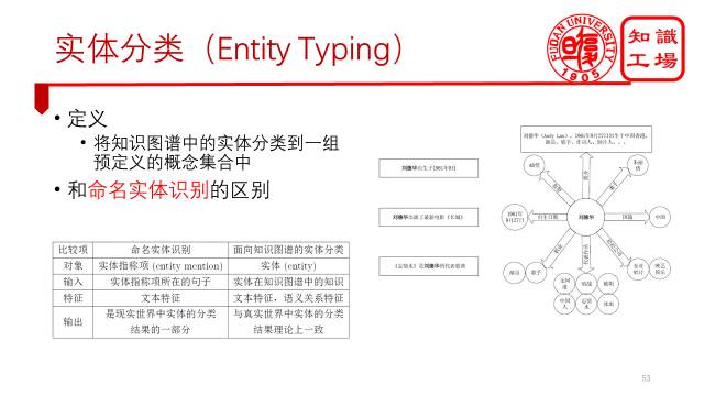第二个是实体的分类信息缺失。我们知道,百度百科中的标签属于folksonomy开放标签,无法进行推理,因此,我们需要把实体分类到能进行推理的ontology上去。