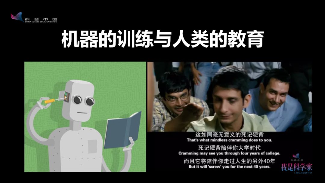 在这个生成的过程里“训练”是避免不了的,这跟人类似,人的教育其实也是一种训练。机器学习就是通过在大量的语料中找到规律。我们人的学习又何尝不是如此?电影《三傻大闹宝莱坞》里对我们传统的教育有很大的批判,很多教育本身也是在死记硬背,也是去找这种的规律。