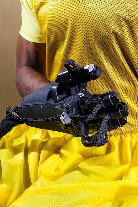 Hardlight 的尼龙和塑料马甲可以与包括 Holopoint 和 Sairento VR 在内的超过 15 个游戏连接起来。动作捕捉传感器可以感测到你做出的“躲避”动作,而 12 个振荡器则可以为你带来从“被拳头蹭一下”到“肚子上被踢了一脚”的各种打击感。