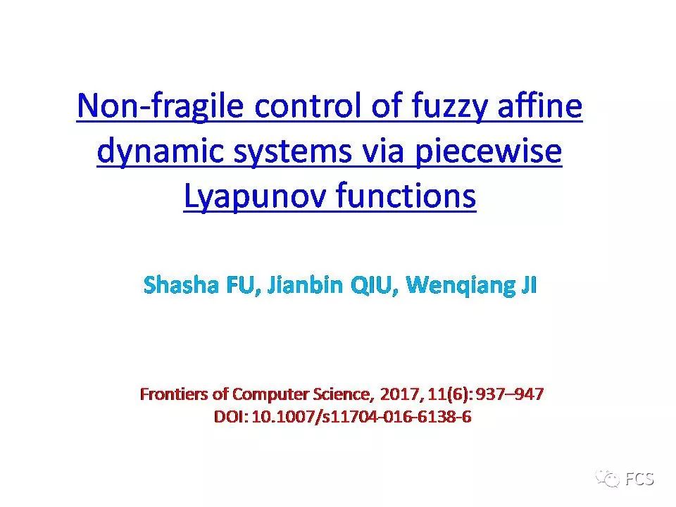 本篇「优青论坛」文章研究了一类不确定模糊仿射系统的鲁棒 H无穷 静态输出反馈控制器设计问题。「优青」作者为邱剑彬。