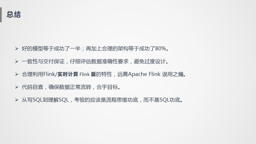 Flink已经配合上下游系统已经帮我们实现了端到端的一致性功能,我们只需要保证内部处理任务不能乱序。我们的解法是避免Join Key发生变化,如提前通过特殊映射关系把Join Key变为业务主键,来保证任务处理是有序的。