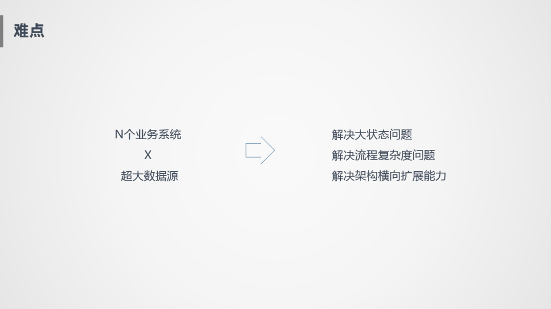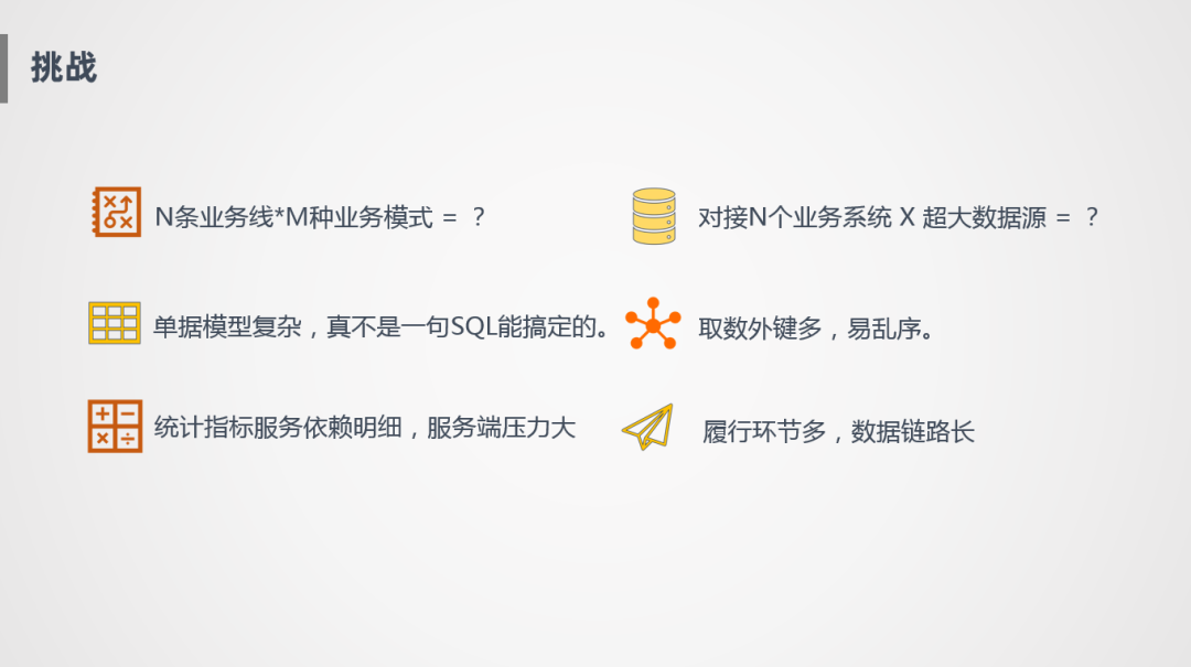 另外一个难点就是我们的很多统计指标都依赖明细,主要是一些实时统计,这种风险比较明显,服务端压力特别大,尤其是大促时,极其容易把系统拖垮。
