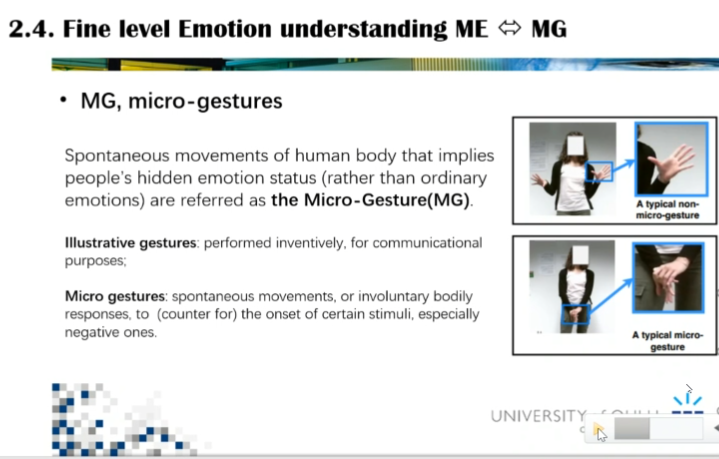 李晓白博士的讲座内容主要分为2个部分:第一部分内容是芬兰奥卢大学机器视觉与信号分析中心在微表情研究方向的工作成果,包括微表情数据库、微表情检测与识别算法等;第二部分是微表情课题的发展计划,包括在建的微表情数据库、相关的身体微姿态研究以及将来的研究方向等。