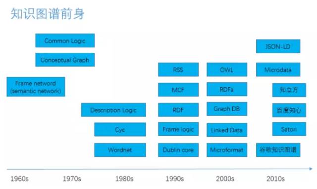 知识图谱自上世纪60年代从语义网络发展起来以后,分别经历了1980年代的专家系统、1990年代的贝叶斯网络、2000年代的OWL和语义WEB,以及2010年以后的谷歌的知识图谱。谷歌目前的知识图谱已经包含了数亿个条目,并广泛应用于搜索、推荐等领域。