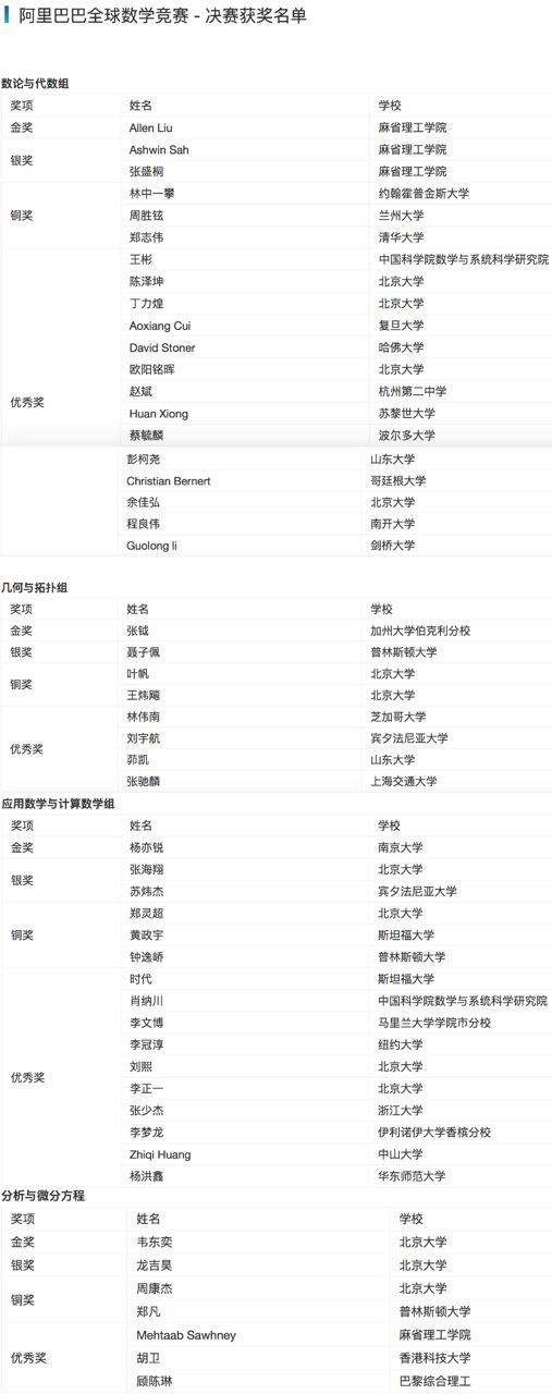 经过激烈角逐,共有 51 名选手在决赛中脱颖而出,下面是阿里巴巴官方公布的决赛获奖名单: