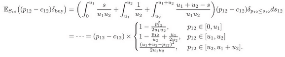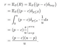 同样的,我们也可以算出期望利润作为产品的利润,(p-c),购买的可能性为 (u-p)/u。