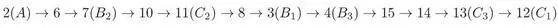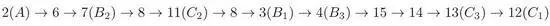 A -> B2 -> C2 -> B1 -> B3 -> C3 -> C1