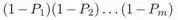 。在这里,(1-Pi)是在 ei 处没有外卖的概率,并且我们可以根据概率论知识知道,
