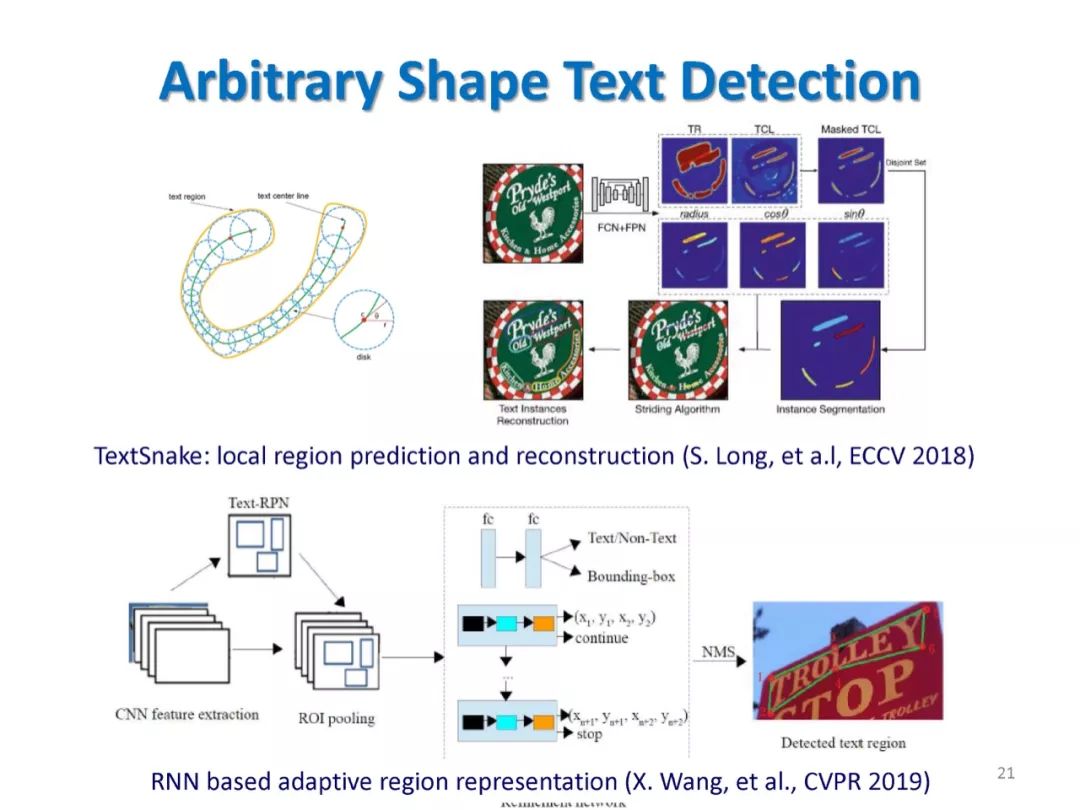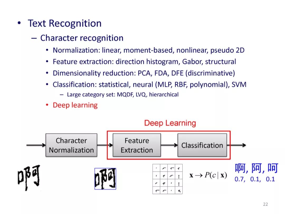 自上世纪50年代以来,文字识别(广义地,称为文档分析)的研究和应用取得了巨大的进展。50-70年代以统计模式识别和特征匹配方法为主;80-90年代提出了很多结构分析方法,并且字符切分、字符串识别和版面分析受到重视;2000年以来继续在文档分析与识别的各个方面持续提高;2013年开始深度学习(深度神经网络)逐渐成为主导性的方法,使文字检测和识别的性能得到明显提升。随着识别精度不断提升和应用的展开,文字识别的可靠性、泛化性、可解释性要求开始凸显,在这些方面传统的模式识别和文字识别方法表现出一定的优势或互补性,与深度学习方法结合可开辟新的研究途径。本报告对文字识别领域历史上主要方法进行回顾,对当前主要方法的特点和一些最新研究动态进行分析,并对将来的研究提出一些建议。