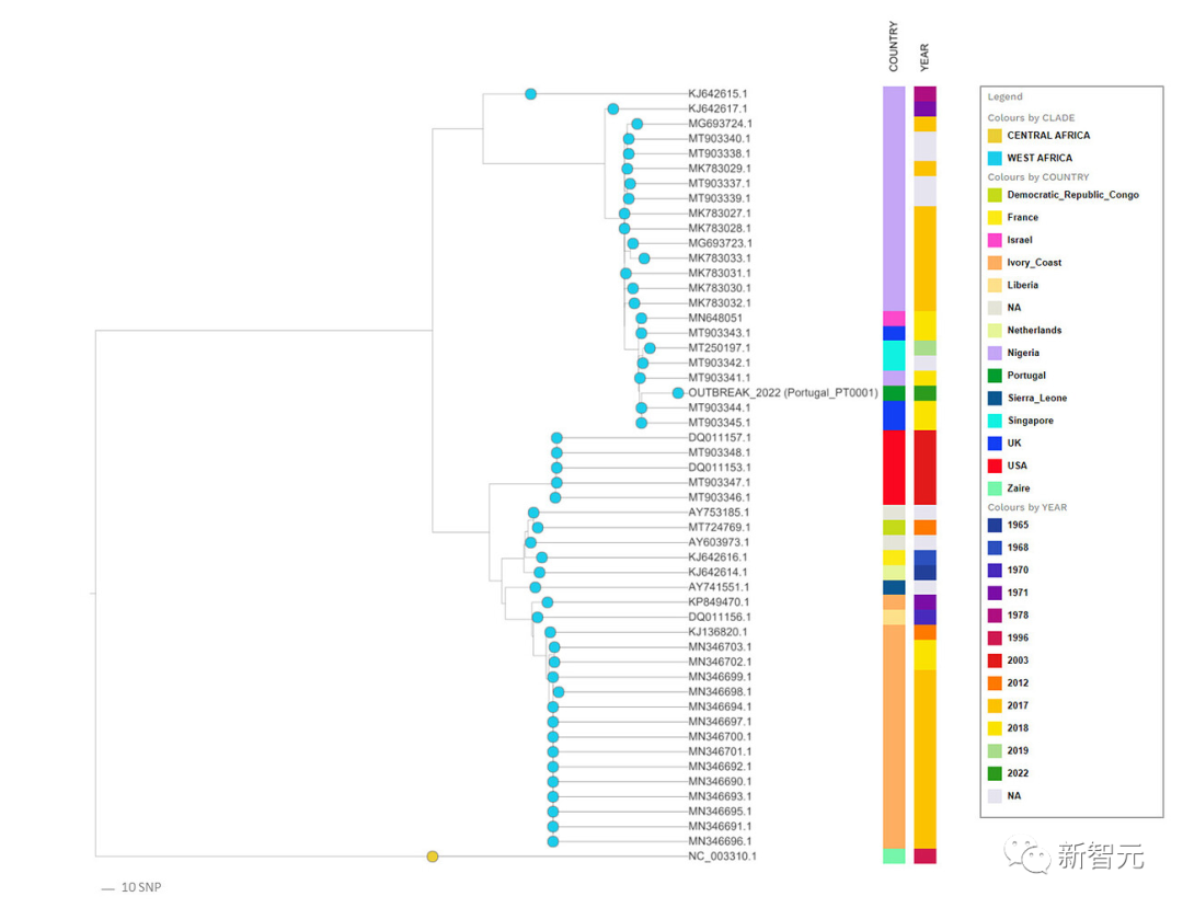 5月19日,由葡萄牙Gomes领导的研究小组发布的第一个完整基因组显示,该菌株与2018年和2019年从尼日利亚到新加坡、以色列和英国的旅行者携带的病毒最为相似。